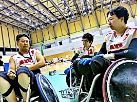 試合の準備は万全。福井さんにキヨが怒られているように見えるけど、そんなことはありません。試合について協議中。