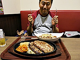 ブラストの面々は「ジンギスカンを食べに行きます〜(ハート)」と街に繰り出して行ってしまった。しかし、「我々も行きますか!」という気には到底なれず。 昨日より目星を付けていた最寄りのハンバーグ屋にGo。