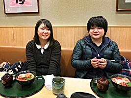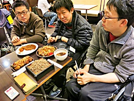 最終日。 モリモリ食べるやべっちとは対照的な上田さん。 少々お疲れか。