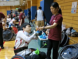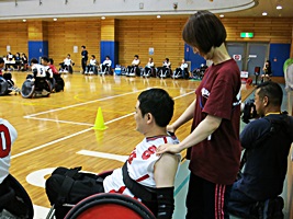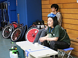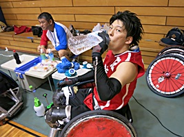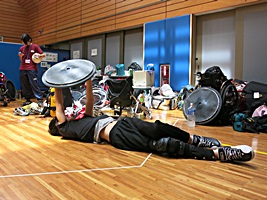 廊下でぐったりする晃生。まだ大会は始まったばかり。