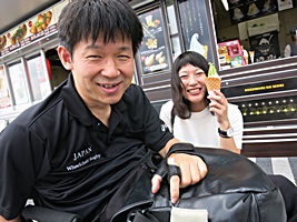 道中で姫路城について色々検索してくれたキヨがうなだれる。