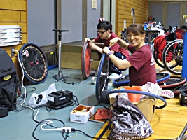 黙々とパンク修理。
