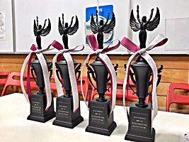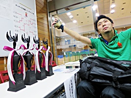 一日が終わりました。 受付の横を通ると…こ、コレは、黒いトロフィー!
